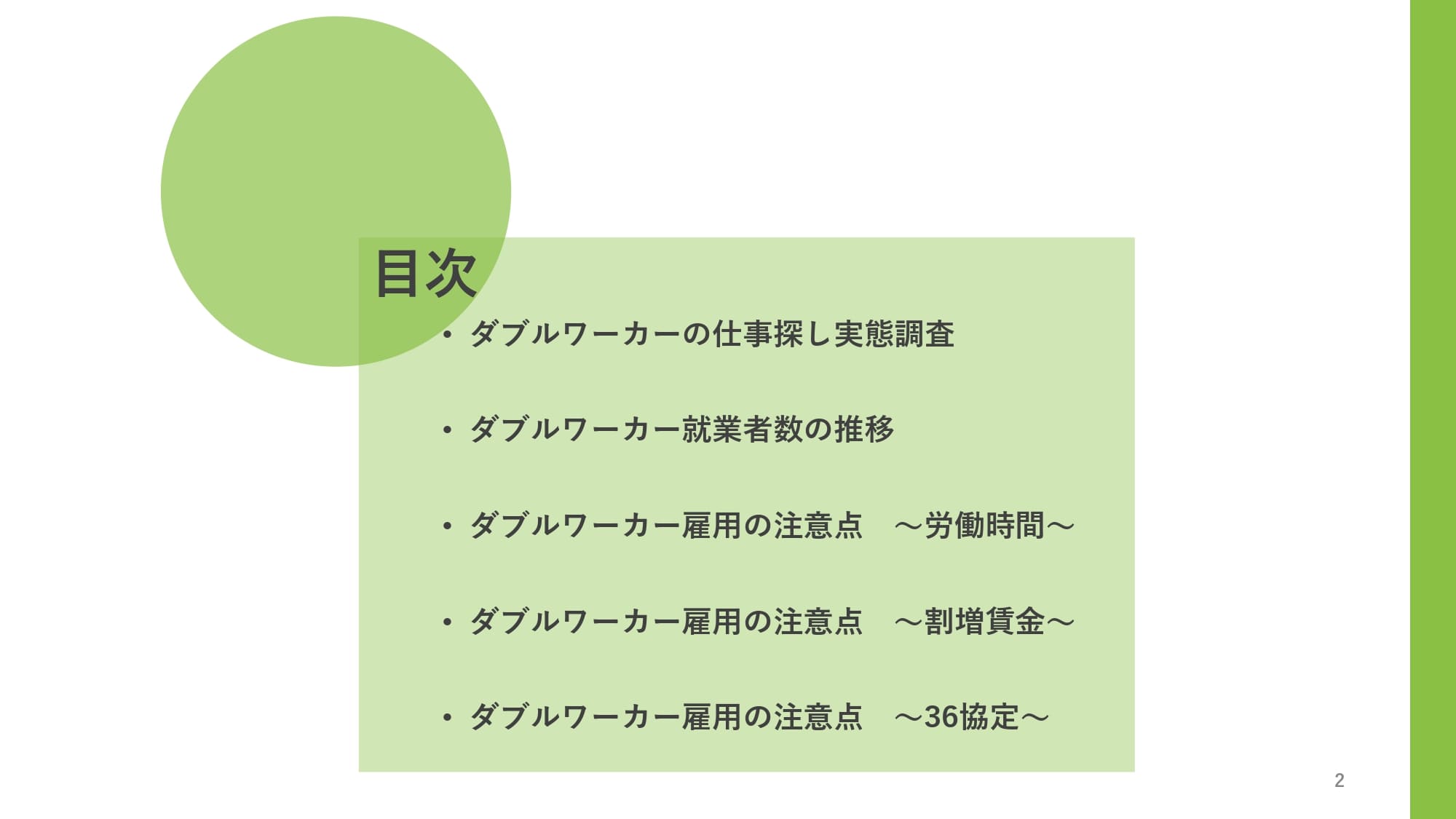 ※同業他社様への資料提供はお断りさせていただくケースがございます。【資料について】資料では、副業者の仕事探しの傾向や決定要因、労働時間の通算や割増賃金の支払い義務、36協定の適用例などを解説しています。また、求職者アンケートの調査結果も含まれており、副業者数の推移や市場動向についても触れています。