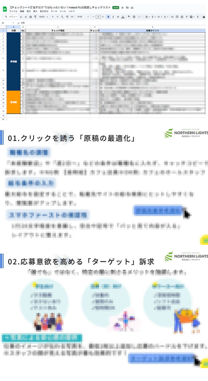 Indeed PLUSの原稿・運用改善時に見直したいポイントをまとめたチェックシートです。